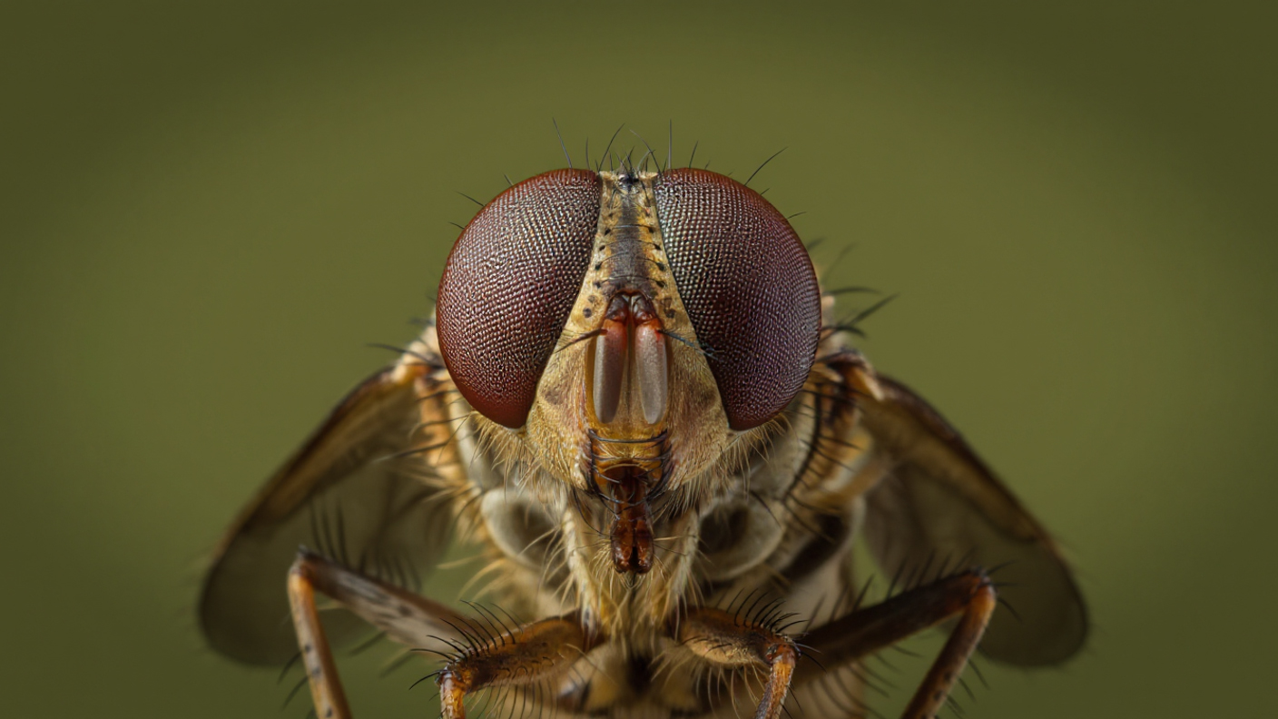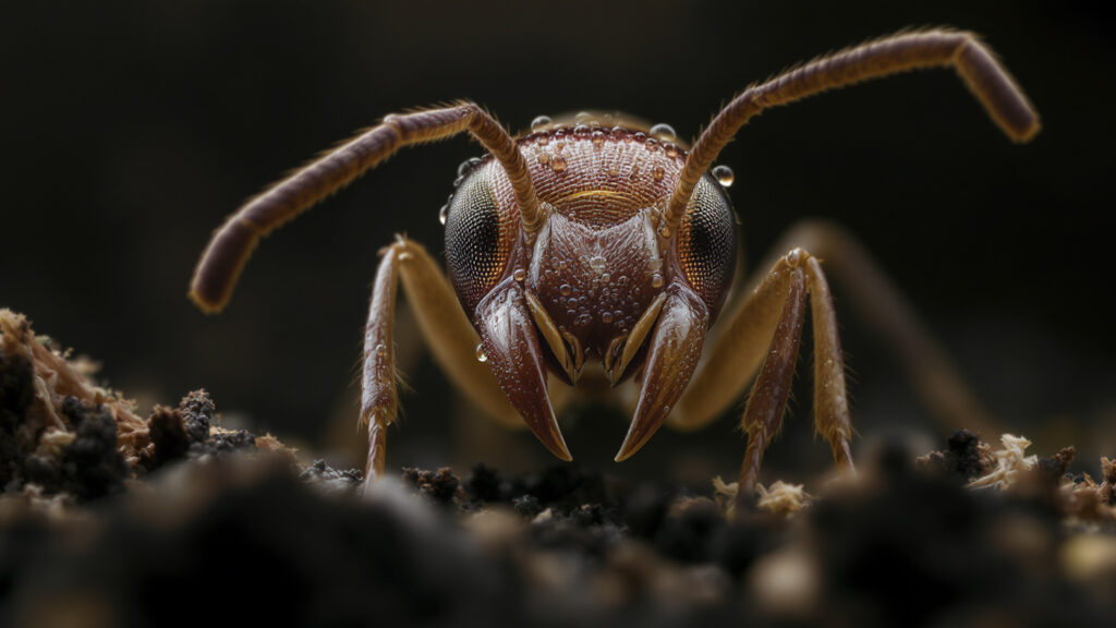This hyper-detailed macro images captures the face of predatory insects with stunning clarity and intensity. The composition centers on the insect’s symmetrical features: bulging compound eyes, segmented antennae, and razor-sharp mandibles. The lighting highlights the glossy textures of the exoskeleton and the fine hairs around the mouthparts, creating a sense of depth and realism. The background is softly blurred in green tones, keeping the focus on the insect’s alien-like visage. The style blends scientific precision with visual drama, evoking both fascination and unease. It’s a compelling fusion of entomological study and high-impact nature photography.
