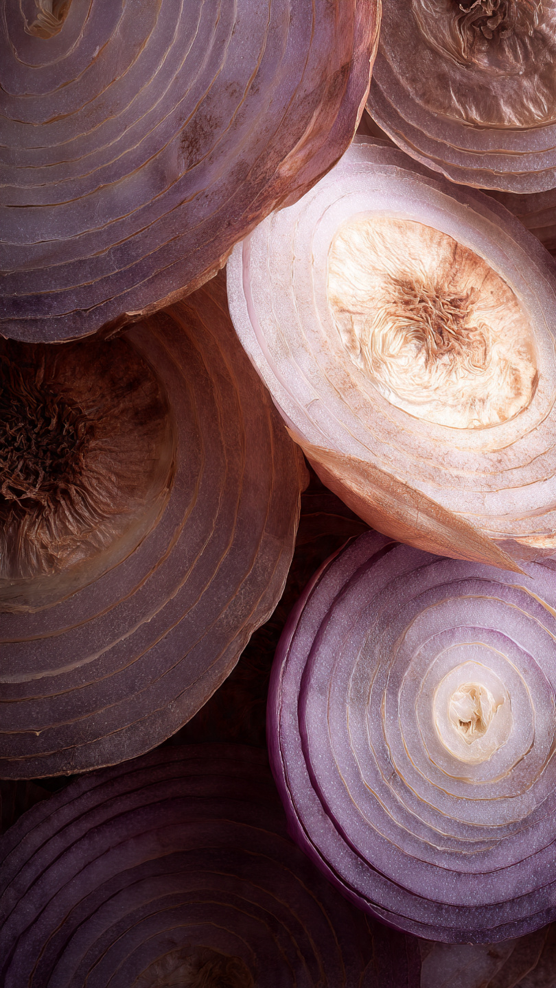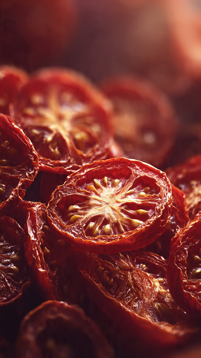 This close-up photograph showcases a vibrant arrangement of dried fruits and vegetables slices, layered to highlight their intricate textures and natural patterns. The central slice is sharply in focus, revealing the fibrous details of the product’s flesh and the rugged contours of the rind. The composition emphasizes the rich, saturated hues of the colors, creating a warm and inviting visual impact. The image adopts a macro photography style, celebrating the organic beauty and symmetry found in nature. With its crisp lighting and tactile realism, the photo evokes a sense of freshness despite the dried state of the product. Ideal for prompts involving food photography, natural textures, or fruit&vegetables-themed aesthetics.