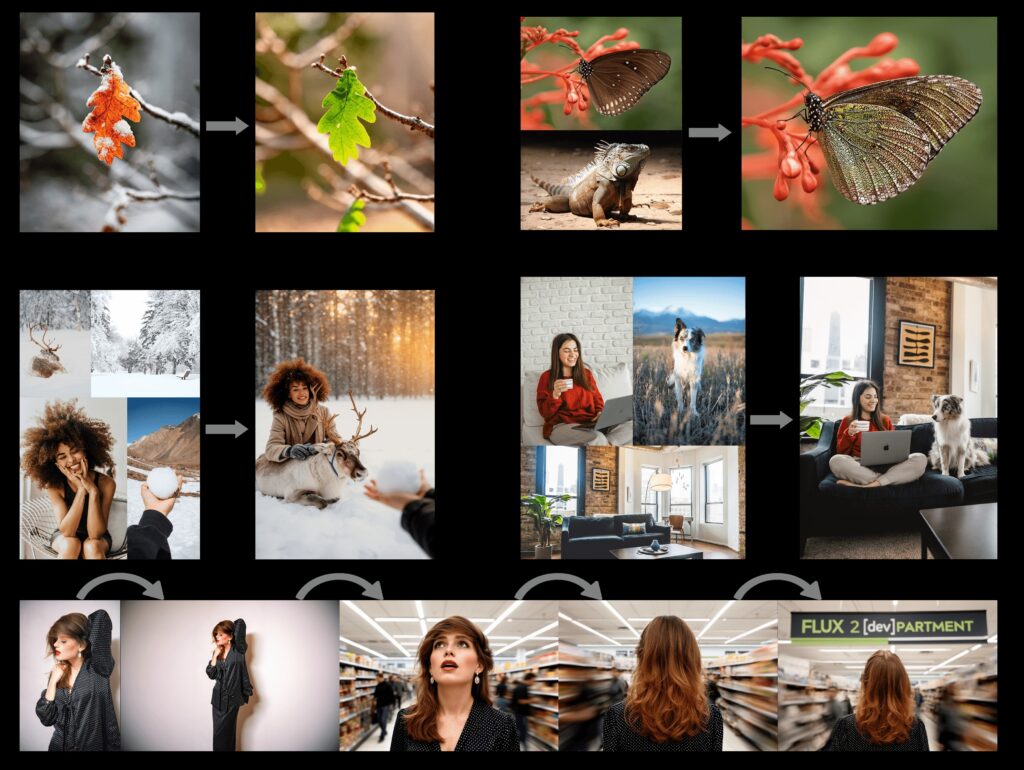 Another noticeable improvement is technical fidelity. Textures, skin details, fabrics, lighting, and overall realism reach a level that situates FLUX.2 among the strongest models available today. It can output images up to four megapixels with a clarity that is especially useful for commercial visuals—product photography, lifestyle scenes, portraits, and high-detail environmental compositions. It also demonstrates a surprisingly reliable grasp of text and typography. Posters, UI mock-ups, signage, and editorial layouts, long considered weak points for many image models, are handled with renewed precision, allowing designers to prototype layout-driven content much faster than before.